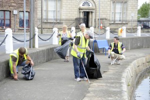 Tidy Towns volunteers do their clean up in Crescent Quay. Pic: Jim Campbell