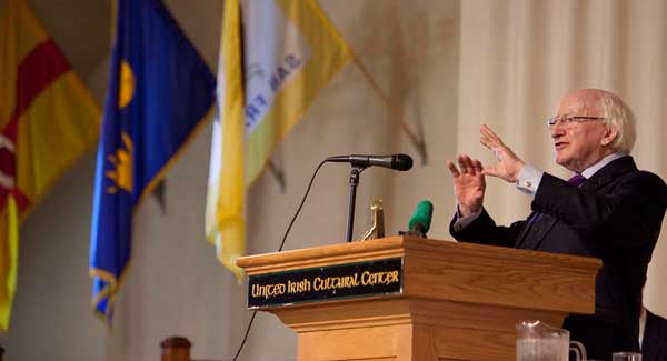 President Higgins and Mayor Tom Bates of Berkeley will plant the tree at the Martin Luther King Civic Centre in California.