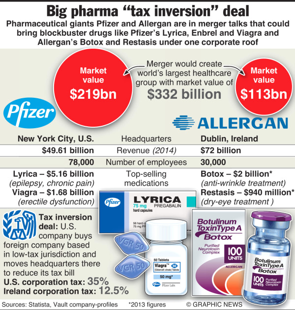 His comments follow the decision by pharmaceuticals manufacturer Pfizer to move its tax address to Ireland, in a merger with Dublin-based Allergan.