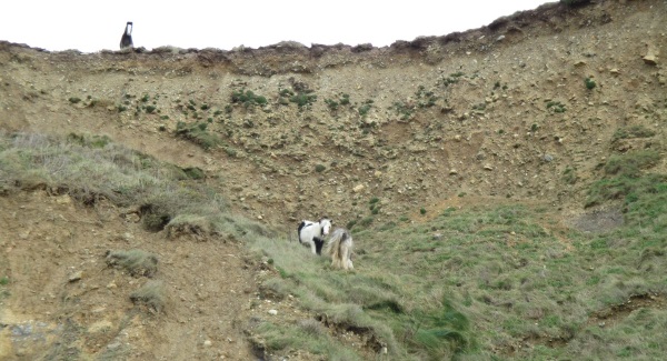 They were completely unable to get back up to the field they were believed to be in, and the animals were too nervous to attempt the steep dangerous slope down to the beach.