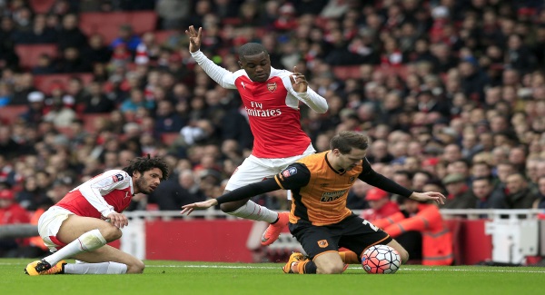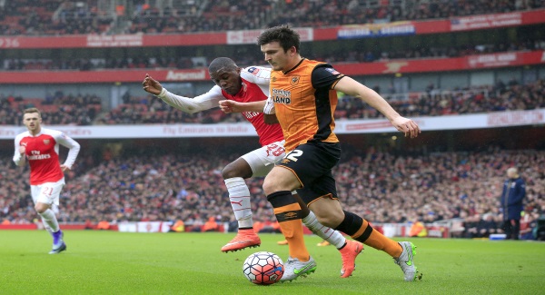 Hull's Harry Maguire was booked for diving in the Arsenal box before a lack of communication between goalkeeper David Ospina and the fit-again Laurent Koscielny almost saw the France defender glance a Shaun Maloney free-kick into his own goal but fortunately for the holders the ball drifted behind for a corner.