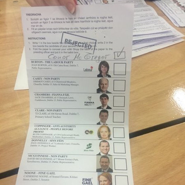 Given his surging popularity in Ireland and beyond, it was pretty much inevitable that someone would give Conor McGregor a vote in the general election.