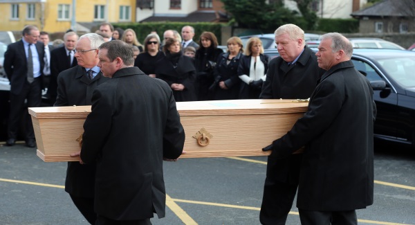 President Higgins, Father Ted creator Graham Linehan and broadcaster Gay Byrne are among the hundreds of mourners to gather at the Church of the Guardian Angels in Blackrock in Dublin.