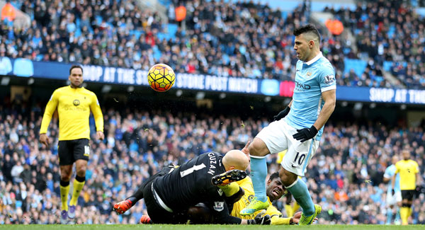 Yaya Toure and Raheem Sterling also got on the scoresheet at the Etihad Stadium while Aguero also missed a penalty in a performance that re-energised City's Barclays Premier League bid after three successive defeats.