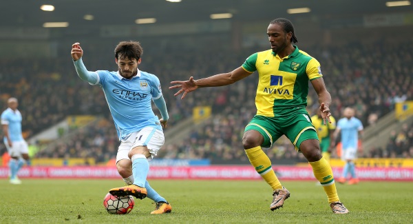 That effort and a tackle by Jonny Howson on Aguero seemed to galvanise Norwich. Matt Jarvis, who switched to the right when Nathan Redmond limped off with what appeared to be a calf problem, next went close.