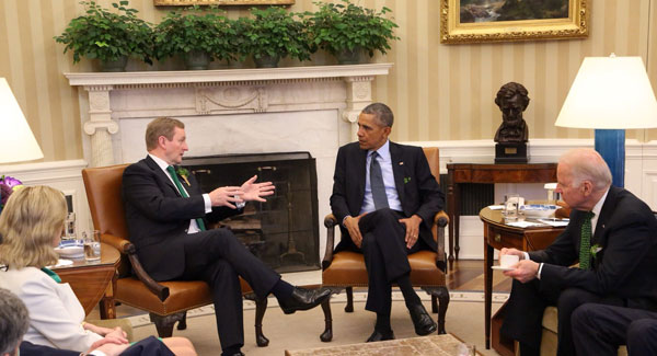 At an Irish Embassy event tonight, Mr Kenny joked that he wished he didn't have to go home after having such a good time in the US capital.