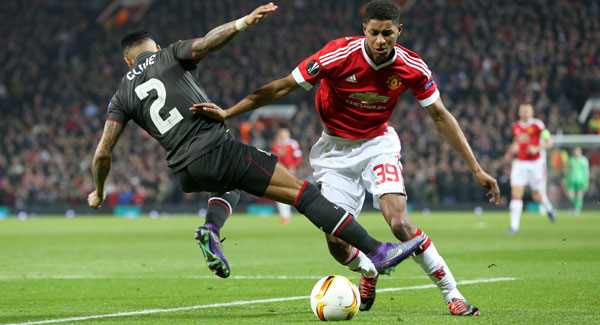 Marcos Rojo prodded inches wide as United looked to level the tie on aggregate, only to be hit by a gut punch just before half-time.