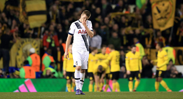 Tottenham were left to focus fully on their Barclays Premier League title challenge as Mauricio Pochettino's side bowed of the Europa League last 16 following a 2-1 defeat to Borussia Dortmund.