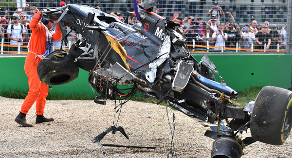 His front-right tyre ripped off his McLaren and Alonso was merely a terrified passenger as his car was sent into the barrier before flipping through the air twice.