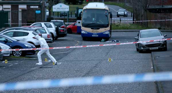 The shooting took place at about 3pm near St Brendan’s Primary School in the Moyraverty area of the Co Armagh town as many pupils were leaving for the day. It is understood a number of children were boarding a nearby bus when the gunfire rang out.