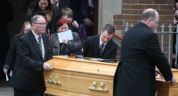 Communities across the North must stand together to reject the dark deeds of the dark men who murdered a prison officer, mourners at his funeral were told.