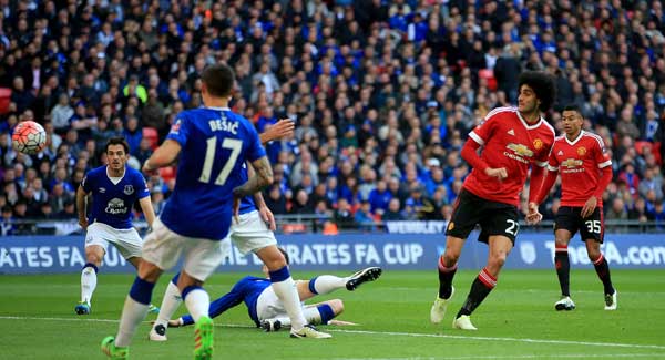 Louis van Gaal’s side dominated the first half of an entertaining semi-final and deservedly led through former Toffee Marouane Fellaini – only for Everton to come back after the break, Romelu Lukaku seeing his penalty saved before Chris Smalling’s own-goal levelled the tie.