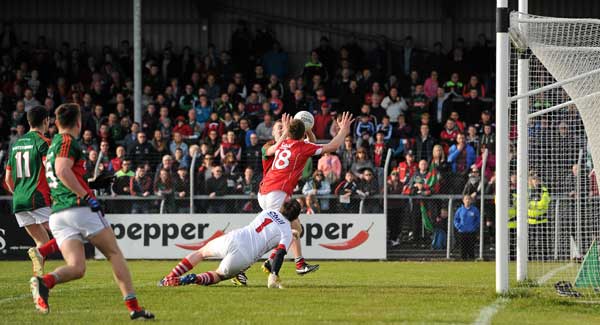 Cork had been rocked by two Mayo injury-time goals in the first half and were hit again for a third when Loftus finished impeccably in the 37th minute after being laid on by Michael Plunkett.