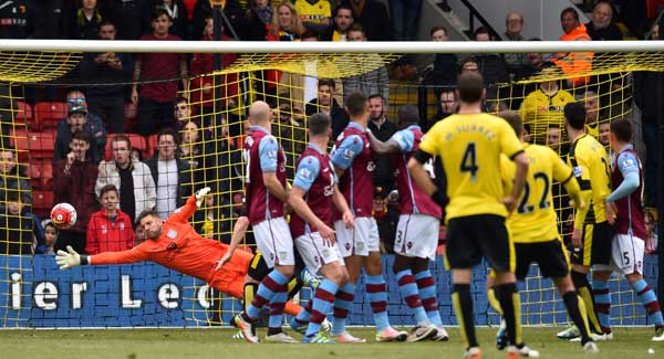 But the beleaguered midlanders, who had Aly Cissokho sent off with 15 minutes left, could not hold on as Deeney’s double, with his second goal coming in the third minute of injury time, piled on the agony.