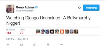 Gerry Adams sent the tweet last night, after apparently watching ‘Django Unchained’, a film set in pre-civil war era America.