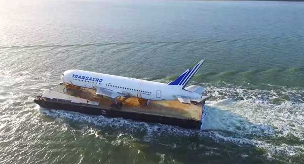 The decommissioned passenger jet’s nearly at the end of its epic sea journey from Shannon airport to its new home at a glamping site in Eniscrone.