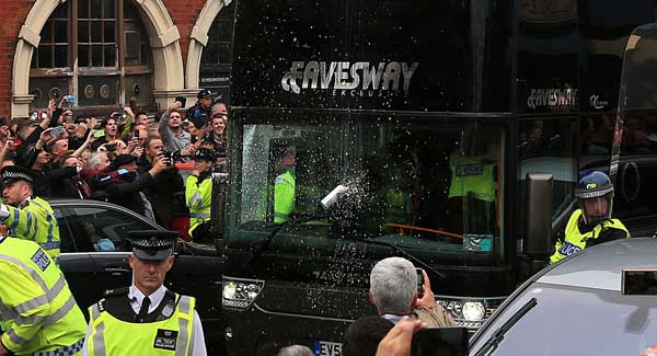 Bottles and other objects were thrown at the coach as it made its way to Upton Park.
