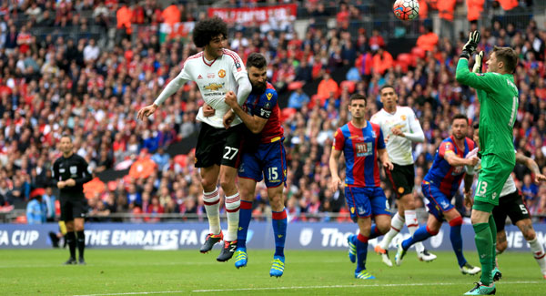 Yet United settled quicker, winning a succession of corners in the early stages and Marouane Fellaini, returning after suspension, twice headed wide. Mata also forced a fine save from Wayne Hennessey.