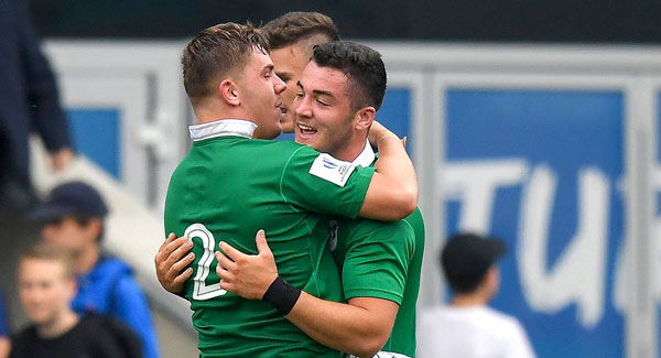 IRELAND U-20: Jacob Stockdale (Belfast Harlequins/Ulster); Matthew Byrne (Terenure College/Leinster), Shane Daly (Cork Constitution/Munster), Conor O’Brien (Clontarf/Leinster), Hugo Keenan (UCD/Leinster); Bill Johnston (Garryowen/Munster), Stephen Kerins (Sligo/Connacht); Andrew Porter (UCD/Leinster), Adam McBurney (Ballymena/Ulster), Conor Kenny (Buccaneers/Connacht), Cillian Gallagher (Sligo/Connacht), James Ryan (Lansdowne/Leinster) (capt), Greg Jones (UCD/Leinster), David Aspil (St. Mary’s College/Leinster), Max Deegan (Lansdowne/Leinster).