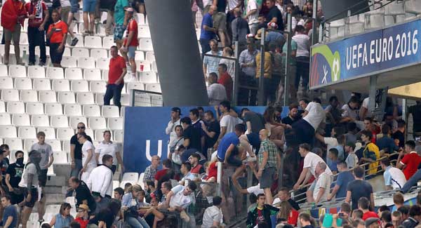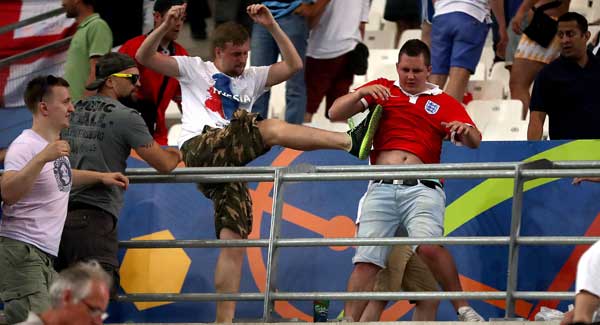 England fans have come under attack inside the stadium following the Three Lions’ Euro 2016 1-1 draw with Russia.
