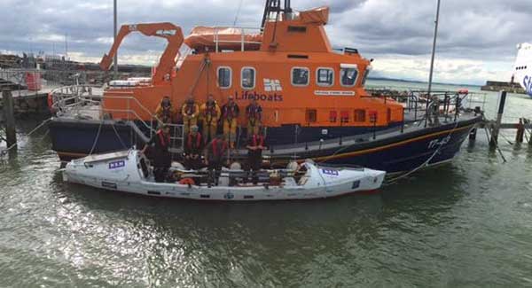 Rosslare Harbour RNLI launched last night to four young men attempting a record-breaking row off the UK coast after they requested assistance in worsening weather conditions.