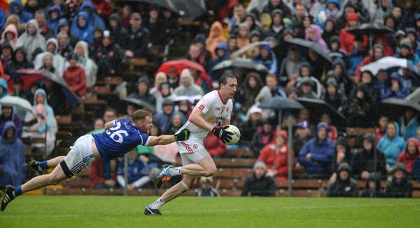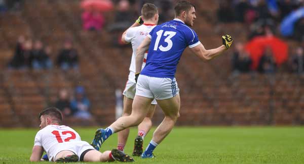 Tyrone struggled to get their running game going, and it was Cavan’s Dara McVeety and Martin Reilly who kept the Breffni men on the offensive with their energetic work along the flanks.