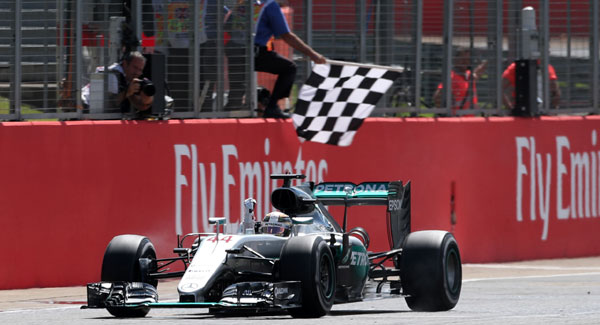The defending champion dominated in the changeable conditions to march to victory and in doing so became the most successful British driver at Silverstone with his fourth win.