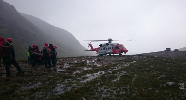 The man in his 50s was injured in a fall while descending near an area known as Hag’s Glen yesterday during heavy rain and strong winds.