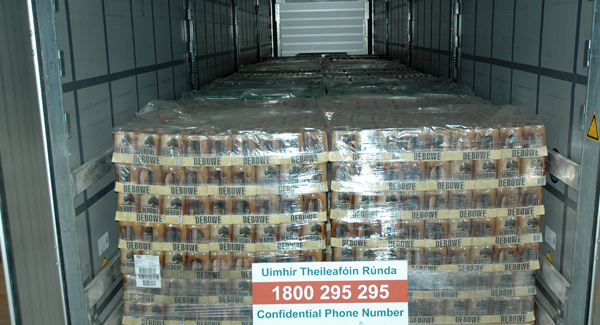 The seized beer is valued at €193,150 and represents a potential loss to the Exchequer of €134,175.