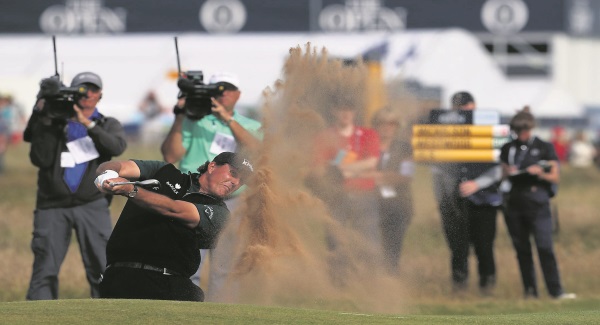 Halfway leader Phil Mickelson and nearest challenger Henrik Stenson, who finished in the same positions at Muirfield in 2013, were not due out until 3:20pm.