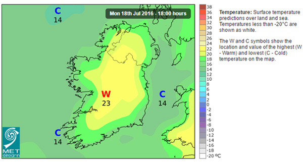 Met Eireann have said it will be warm, dry and sunny for the day with highest temperatures of 21C to 26C – warmest in the Midlands.