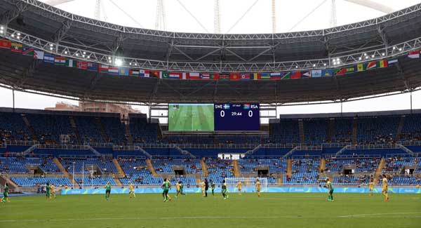The stadium, in the north of the city and named after Joao Havelange, the now 100-year-old former FIFA president, was built for the 2007 Pan American Games and the capacity was temporarily expanded for the Olympics.