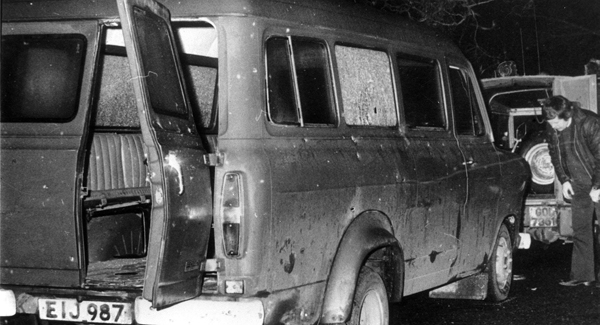 The killers, who had been hidden in the hedges, ordered the rest to line up outside the van and then opened fire.