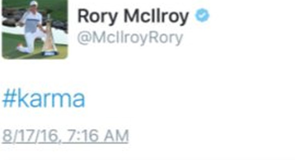 And it looked suspiciously like Rory McIlroy was also keeping a close eye on the news. He tweeted, and then rapidly deleted, one word ‘karma’.