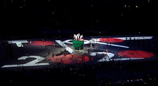 In a section that showcased Japan’s reputation for design and technology, video screens showed a red ball being passed around various Japanese Olympians and computer game characters, including Super Mario, who then jumped into a green tube.