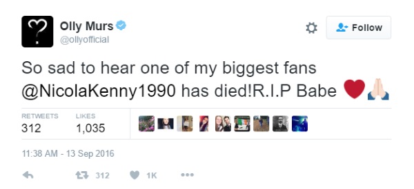 Nicola was laid to rest on Thursday of last week and since then her friends have started an online campaign for Olly Murs to pay tribute to the young teen, as she was a massive fan.