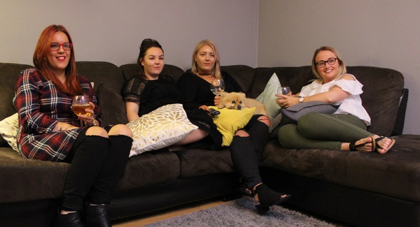 The self-proclaimed reality TV addicts love their Friday night in which involves the sofa, the telly, a gossip session and copious amounts of white wine – we love them already.