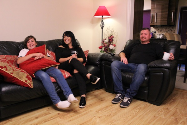 Laura and Des are joined on the couch by their 12-year-old daughter, Danielle.