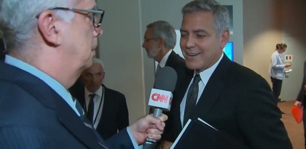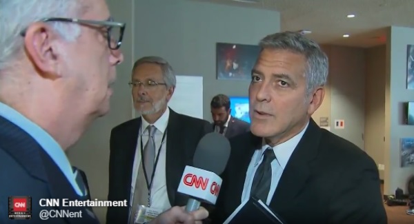 The actor was being interviewed by CNN while at a UN roundtable discussing the refugee crisis Tuesday, when the interviewer (who clearly didn’t want to have to ask the question) probed Clooney on his reaction to the split.