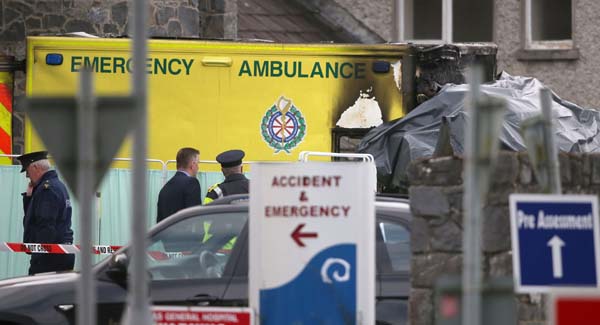 Christopher Byrne, aged 78, from Suncroft, Co Kildare, died and two ambulance workers, Dave Finnegan and Stephen Lloyd, from Baltinglass, Co Wicklow, suffered burn injuries when there was an explosion in the vehicle outside Naas Hospital on Thursday.