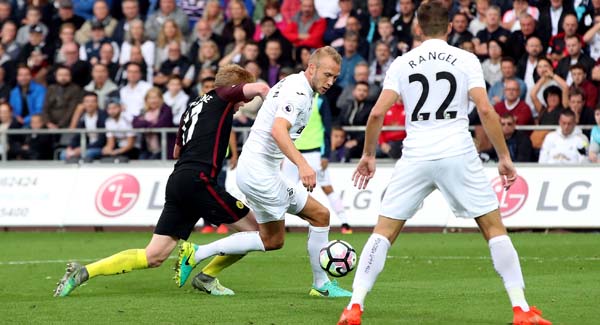 The Swans held Guardiola’s men until midway through the second-half before conceding a contentious penalty, but they have collected just four points from six games.