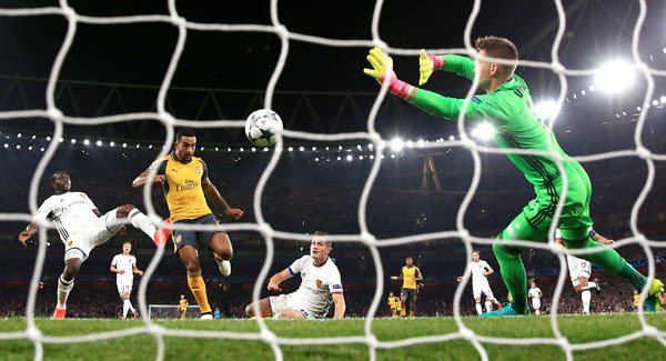 Vaclik was keeping Basle in the game and saved again from Hector Bellerin after yet another smart pass from Walcott set the full-back clear.