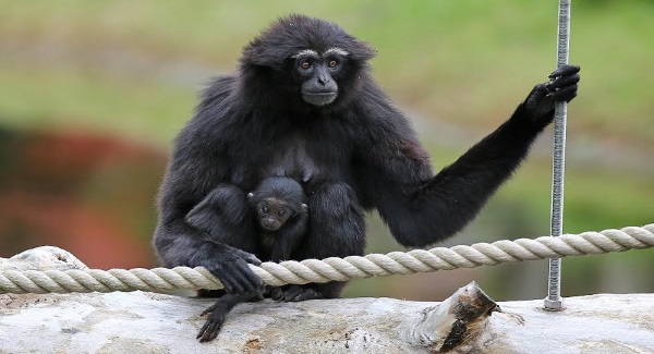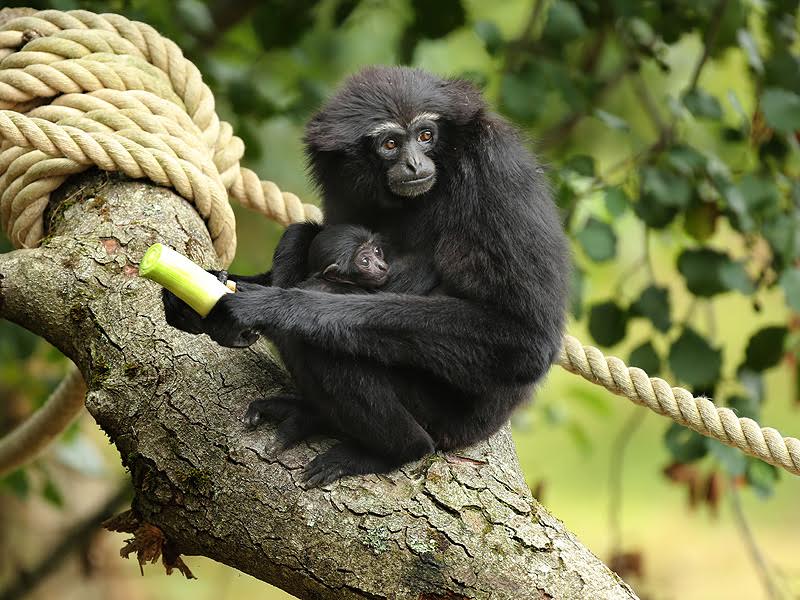 Agile Gibbons, which are the fastest and most acrobatic climbers in the forest, live in monogamous pairs and mom Chloe and dad Conor have two older offspring.