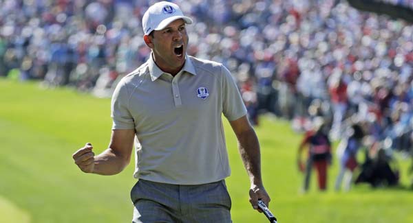 Then Garcia, who had missed from 18 inches at the 11th to allow the United States to go four up, holed a difficult two footer for the half to complete the session and leave Europe trailing by just 6.5 to 5.5.