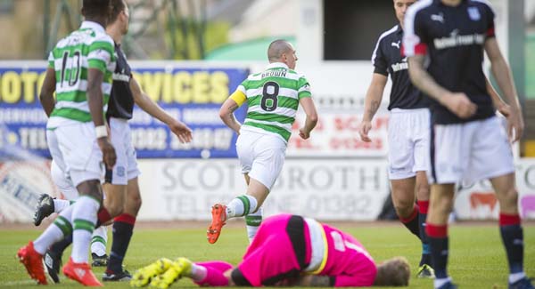 Inspirational skipper Scott Brown’s second-half strike gave Celtic a narrow but deserved 1-0 Ladbrokes Premiership win over Dundee at Dens Park.