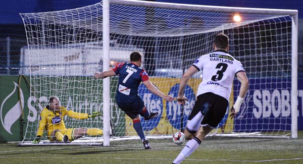 They lost the ball in midfield, allowing Raffaele Cretaro to find Phil Roberts on the left of the Dundalk box before he curled the ball past Rogers to double their lead.