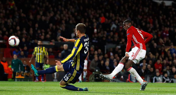 Paul Pogba scored twice as Manchester United defeated Fenerbahce 4-1 to move to the top of Europa League Group A.
