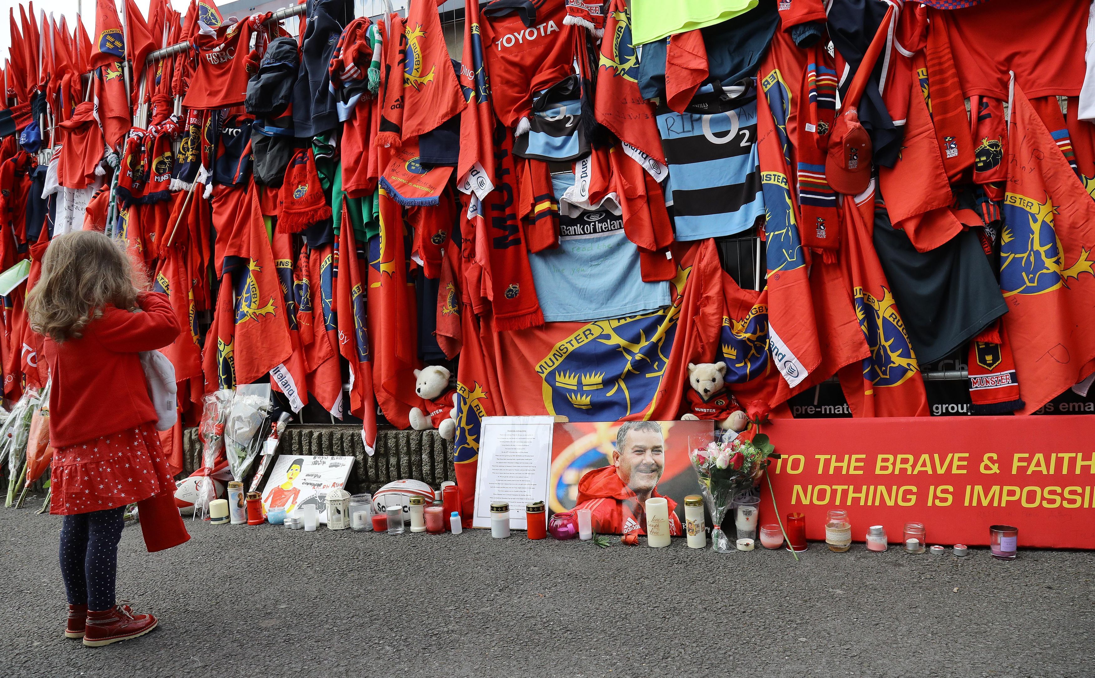 They gathered at a shrine in the 42-year-old’s honour by the Limerick stadium before Munster take on Glasgow Warriors at 1pm.