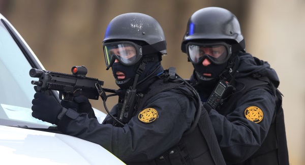 Later a suspect acting suspiciously on the dock watching the activity at sea took a man and woman hostage and sought refuge in a port warehouse.