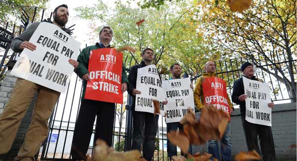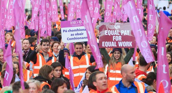 The INTO and TUI protest co-incited with the first of seven days of industrial action in protest at the existence of two separate pay scales for members.